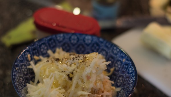Riv äpplet grovt på ett rivjärn, behåll skalet.