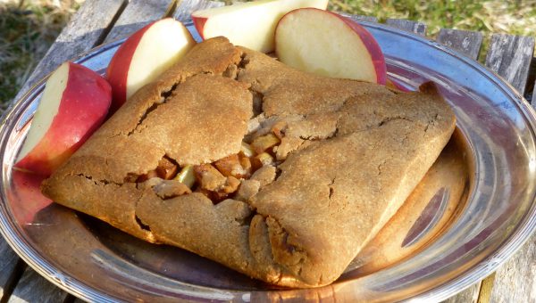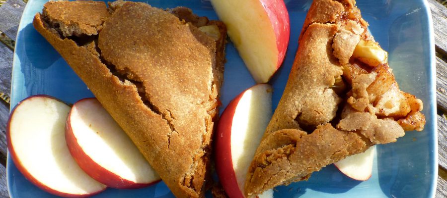 Fyllningen: tärna äpplet med skalet kvar. Stek i kokosolja tills de blivit aningen mjuka. Krydda med kanel och ingefära.