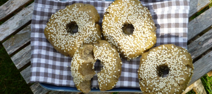 PALEO. Bagels ska kokas två minuter innan de åker in i ugnen. Den här varianten är gjord på cassavamjöl och konsistensen blir då lite mer kompakt jämfört med vanliga bagels. Var noga med att använda ett bra cassavamjöl som är just mjöl och inte stärkelse. Mjölet ska inte ”knarra” som potatismjöl. Vi använder Rawfoodshops eller Dorimax mjöl.