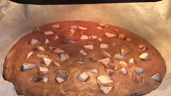 Häll ut smeten på bakplåtspapper. Ev toppa med äppelbitar som du pudrat med kanel.