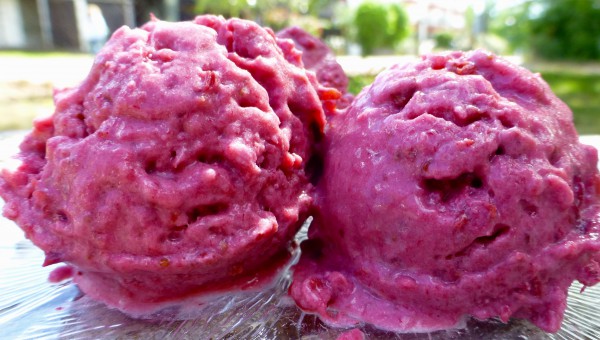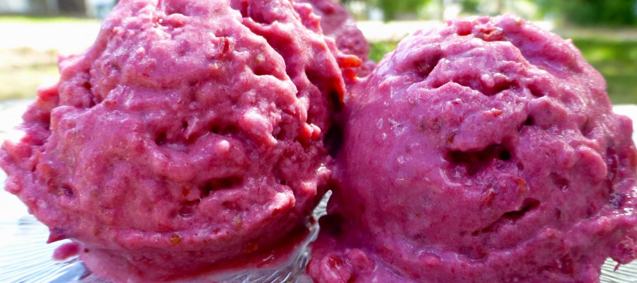 AIP/PALEO. Till den här glassen passar lite syrliga bär, som t ex svart vinbär. Det är även gott med mixad fryst bärblandning med jordgubbar, hallon och blåbär. Bananen ger sötning och lite gelatin i glassen gör den krämig.