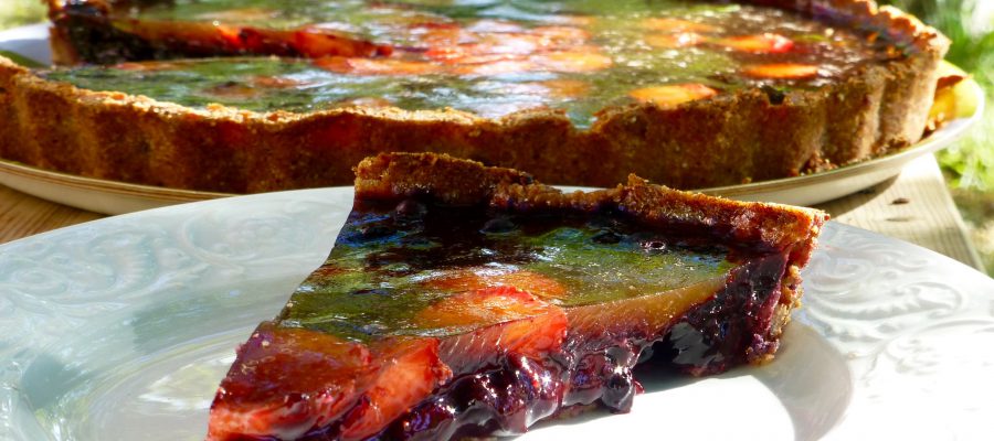 AIP/PALEO. Bärtårta med geléöverdrag med klassiska smaker av blåbär och jordgubbar.