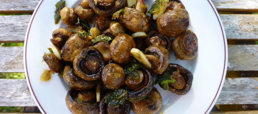 PALEO/AIP. Mini-champinjoner passar bra att steka hela. Med citron och vitlök lyfter man smaken. Gott som tillbehör eller som en vegetarisk rätt.