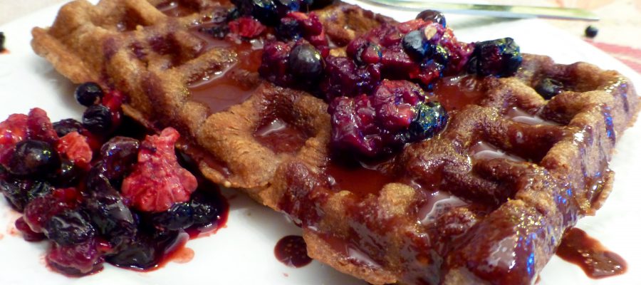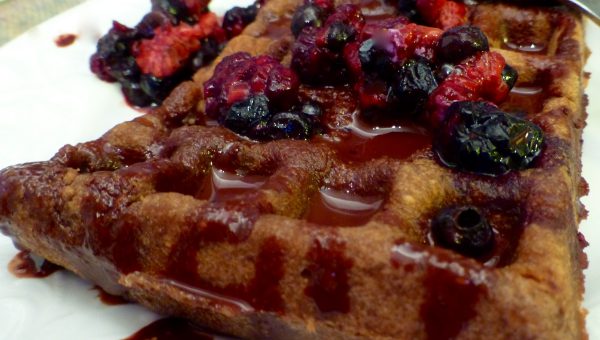 PALEO. Våfflor med chokladsås i smeten blir väldigt gott. Servera med massor av chokladsås och färska eller tinade bär.