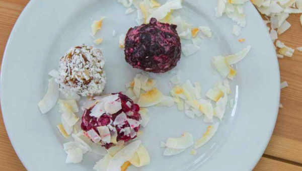 Forma små bollar och rulla dem i kokosflingor. Ställ dem att stelna i frysen.