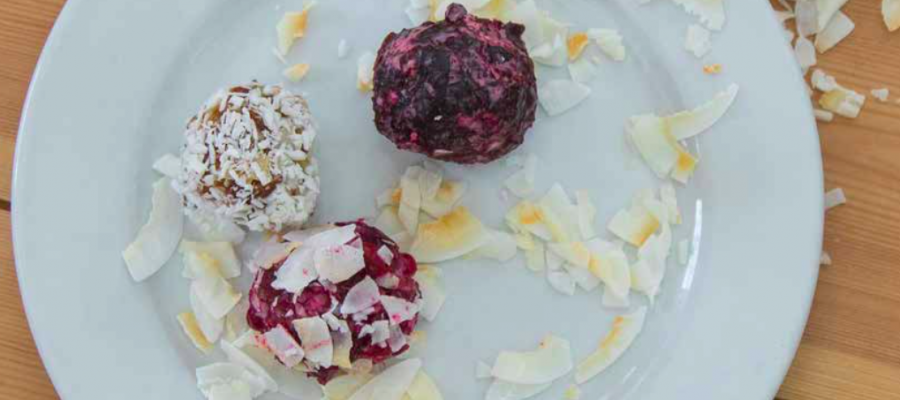 10 Urkärnade dadlar, tex Juicy Dates 2 dl Kokosflingor 4 msk Rumstemp kokosolja 1 krm Äkta vaniljpulver 1 dl bär, eller neutrala Gör så här: