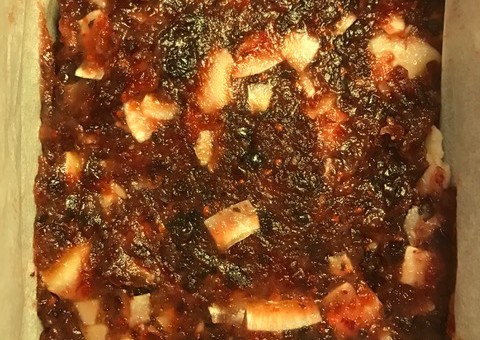 Smula över resten av degen och häll över resterande smet och toppa med koksochips, flingor.