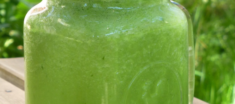 1 dl Färsk spenat 1x1 cm Färsk ingefära 1 tsk Gelatinpulver 1 tsk Äppelcidervinäger 10 cm Gurka 1 stjälk Selleri 2 dl Vatten eller kokosvatten 1 krm Gurkmeja Eventuellt lite honung för sötning Gör så här: