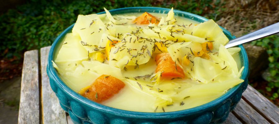 AIP/PALEO. Plånboksvänlig vegetarisk soppa med kokosmjölk. Krydda gärna med lime och koriander för en mer thailändsk smak, men om man inte gillar koriander går det bra med timjan istället.