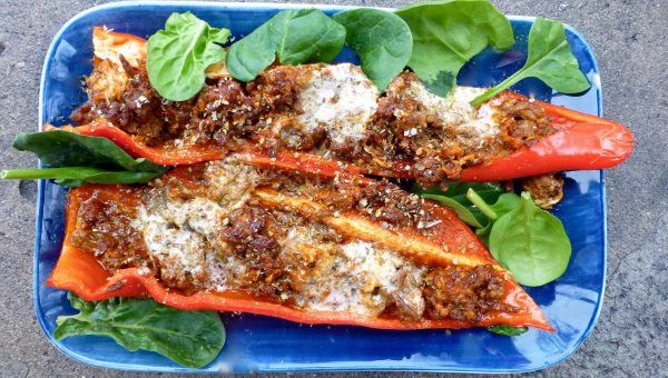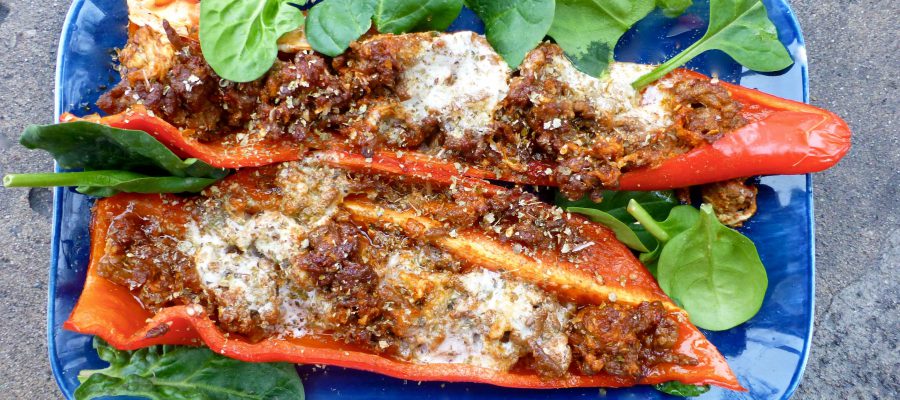 Köttfärsfylld paprika med chilitoppning (paleo)