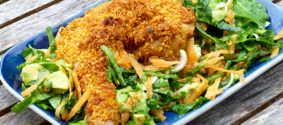 Krispiga kokospanerade kycklinglår (AIP,Paleo)