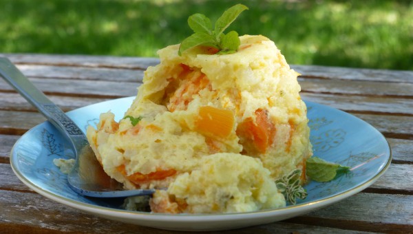 2-3 st Morötter 4-5 st Potatisar 2 st Ägg 2 dl Kokosmjölk 1 tsk Havssalt 1 dl Finhackad persilja Gör så här: