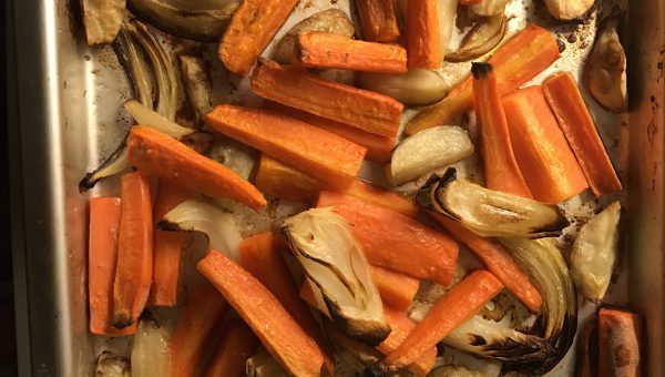 AIP/PALEO. En vegetarisk soppa på morötter, lök och jordärtsskocka som först rostas i ugnen för att sedan mixas med kokosgrädde eller vatten. Rostningen ger en fin söt smak.