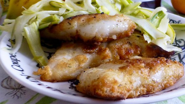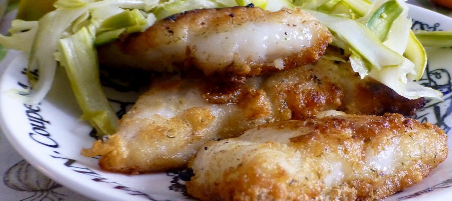 Panerad fisk med hyvlad sparrissallad (AIP,Paleo)