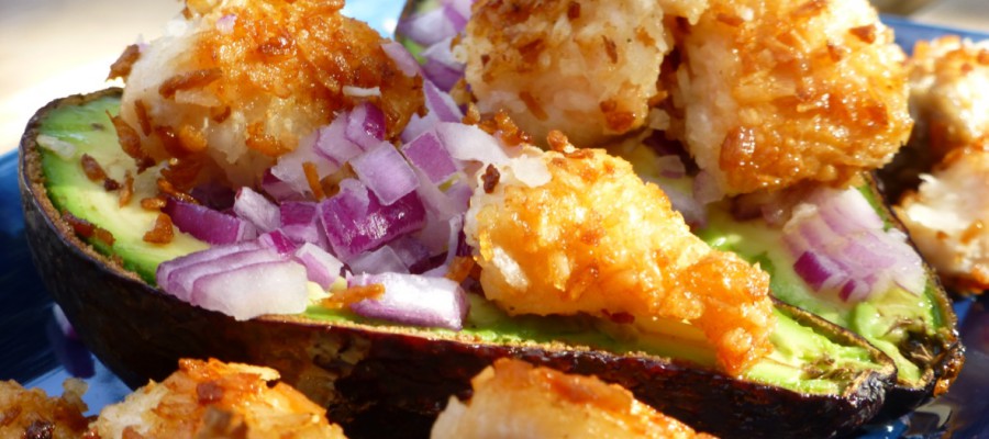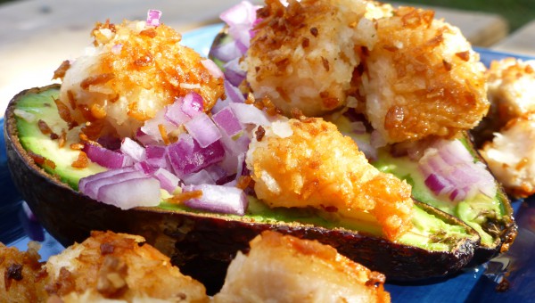 AIP. Små fiskbitar som paneras i kokosflingor, citron, gurkmeja och salt och sedan steks krispiga. Servera med en halv avokado och finhackad rödlök och en klick guacamole.