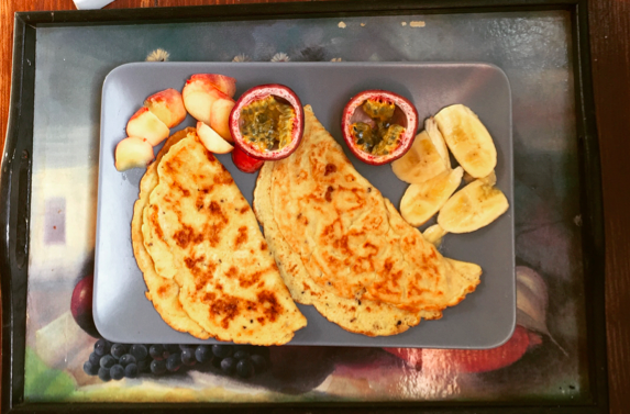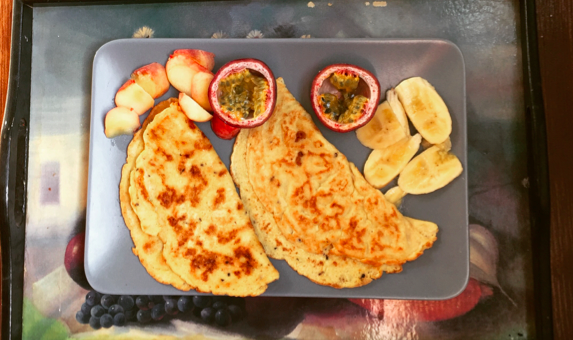 PALEO. Ät dessa pannkakor med färska bär och frukt. Cassavamjöl ger en lite matigare smak än mandelmjöl, men har du mandelmjöl hemma så går det också bra.