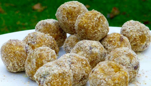 Rulla små fina bollar och vänd i riven kokos eller jordmandelmjöl.