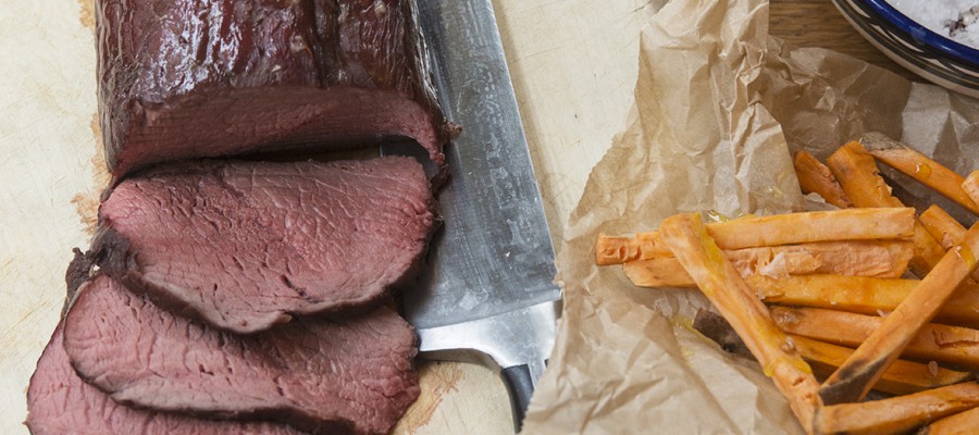 Ta ut köttet och låt vila ordentligt innan du skär upp det.