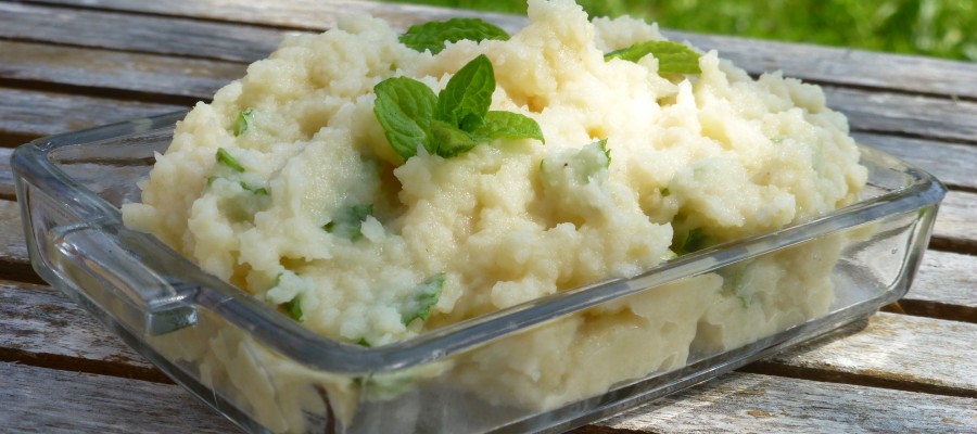 2-3 dl Rotselleri, kokt eller ugnsbakad, skalad 1 msk Olivolja 1/2 Citron, juicen 1 tsk Äppelcidervinäger 2 msk Hackad färsk mynta (eller persilja) 1 nypa Salt Gör så här: