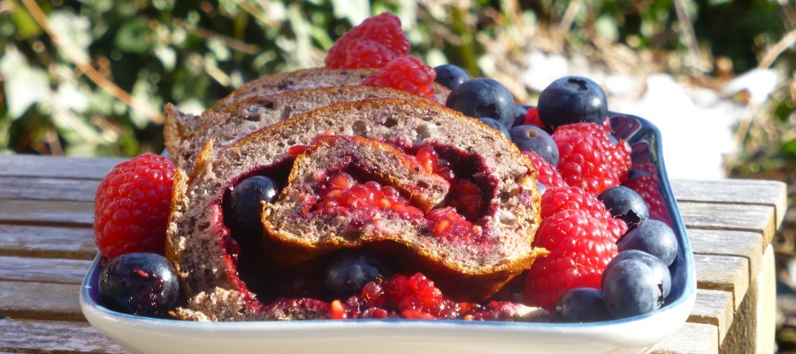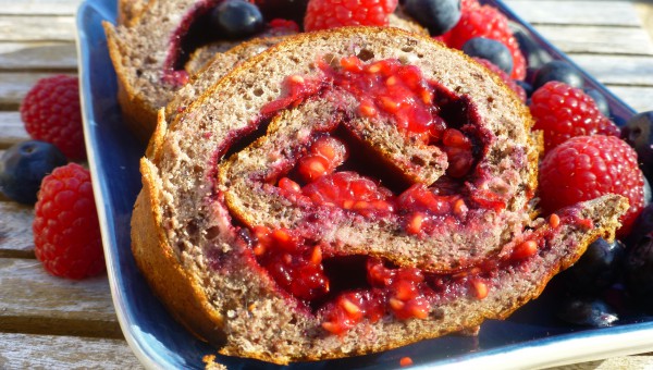 Bred sylten gjord på t ex hallon och mosad banan på bottnen och rulla ihop. (Recept på traditionell sylt finns även under efterrätter). Låt stå i kylen en stund innan den skärs upp.