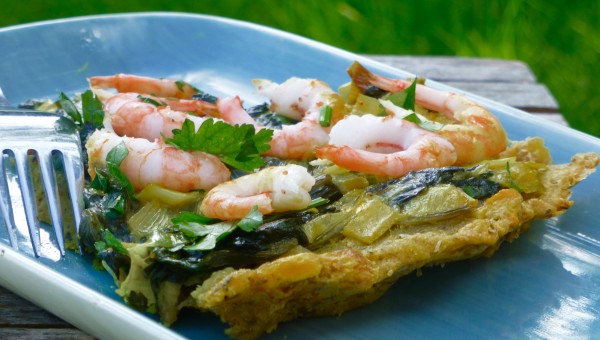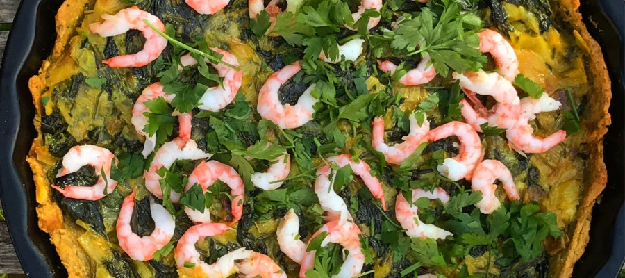 Spenat- och purjopaj med räkor (AIP, Paleo)