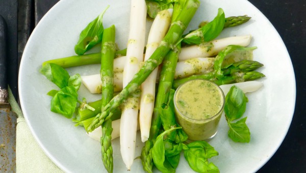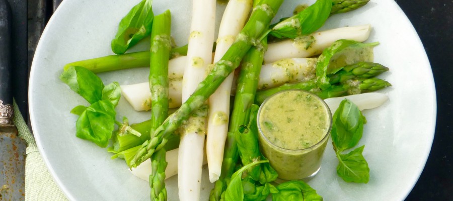 5-7 svartrötter 1 knippe grön sparris 1 kruka Färsk basilika Till dressingen Ingredienser: 1/2 Citron, juicen 1 msk Kapris 3 st Sardellfileér 1/2 dl Olivolja eller avokadoolja 1/2 Kruka basilika Gör så här: