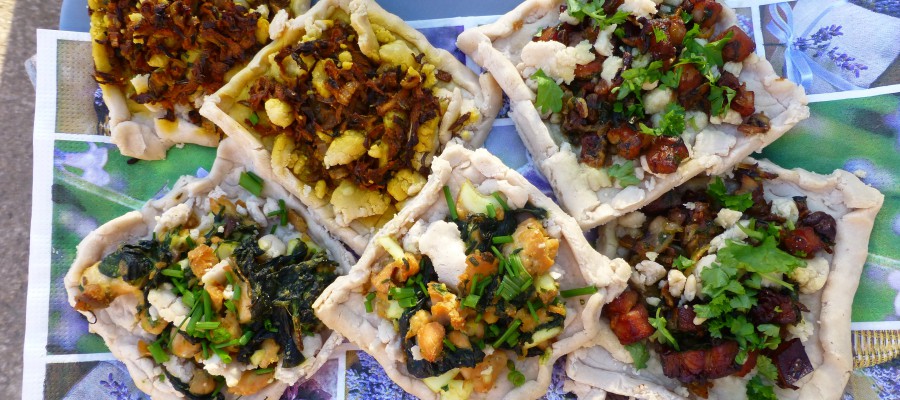 AIP. Pajer med tre olika sorters fyllning. En med sidfläsk och svamp, en med lax och spenat och en vegetarisk med morötter, svamp och lök.