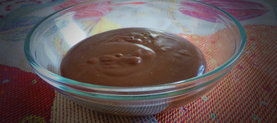 AIP. När man utesluter kakao finns det carobpulver som ersättning. Ät dock detta undantagsfall då carob tillhör de råvaror man ska äta med måttfullhet vid strikt AIP. Det smakar sött, lika kolaaktigt. Köp på nätet eller i välsoreterade butiker. Servera den varm och rinning till glass eller kall och fast som topping på sötsaker. Det går bra att spritsa den när den är kall.