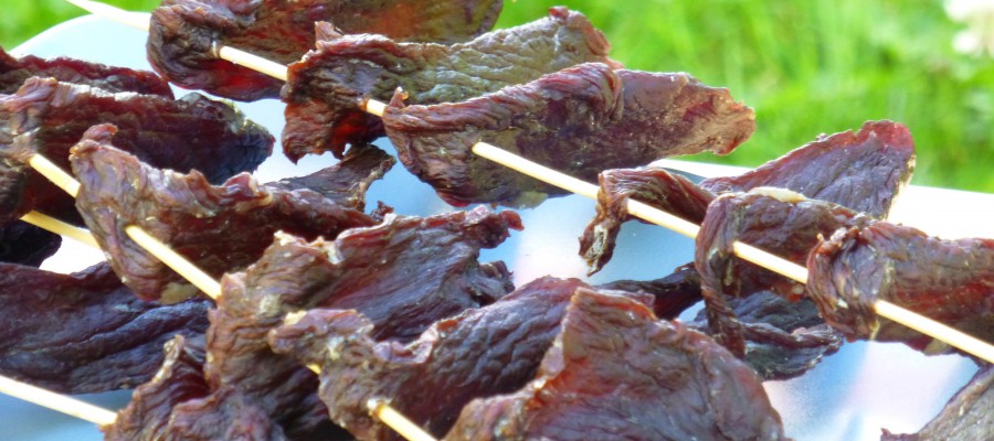 AIP/PALEO. Torkat kött är gott som snacks på utflykt eller i picknick-korgen. JU längre köttet hänger och torkar desto segare blir det. Tricket är att salta ordentligt, då håller det längre.