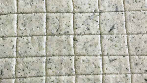 Klicka ut på ett bakplåtspapper. Lägg ett bakplåtspapper över och tryck ut med händerna tills degen är jämn och platt, några millimeter tjock. Tänk kex-tjocklek.