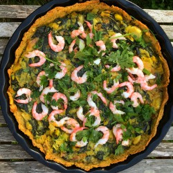 Spenat- och purjopaj med räkor (AIP, Paleo)