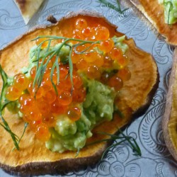 ROSTADE SÖTPOTATISSNITTAR MED AVOKADORÖRA OCH LÖJROM (AIP/PALEO)