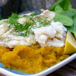 Stekt fisk med gurkmeja och jordärtsskockspuré (AIP, Paleo)