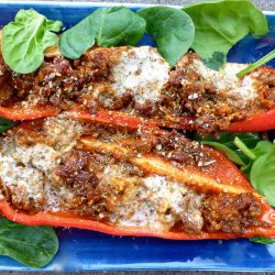 Köttfärsfylld paprika med chilitoppning (paleo)